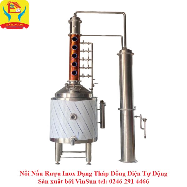 Nồi Nấu Rượu Inox Dạng Tháp Đồng Nấu 50Kg Gạo Điện Tự Động VinSun